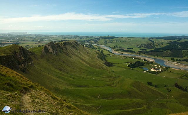 A városban nem időzünk sokat, délre indulunk a Heretaunga-sík felé, mely a gyümölcstermesztés egyik központja. Hastings város felé útba ejtjük a 399 méteres Te Mata csúcsot, ahonnan panoráma kilátás nyílik az egész tartományra. A 399 m. kezdetben nem tűnik magasnak, de lévén egy síkságról emelkedik, bizony a buszunk jól szuszog míg feljutunk. Az út meredek, a kanyarok élesek én pedig azon töprengek, vajon mennyi tapasztalata van sofőrünknek, milyen mély a szakadék, ha netalán véletlenül túl éles a kanyar. Szerencsére nem volt okom az aggodalomra.
