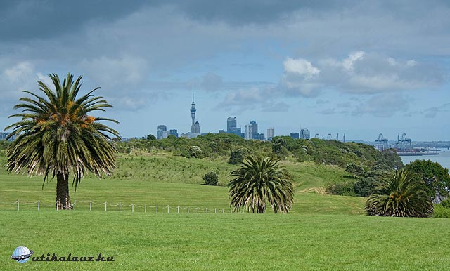 A kilátás csodás, a távolban bal felé Davenport, kicsit keletebbre Rangitoto szigete, jobb oldalon a Hobson-öböl, távolabb pedig az Eden csúcs.