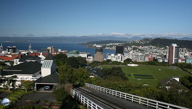 Innen az Oriental Bay mellett a Victoria-csúcsra vezet utunk. A kilátás gyönyörű s az idő is meggondolta magát, kiderült. Minden gondozott, rendezett; egy beteg fa kivágásához engedély kell és 6 héten belül újra kell ültetni. Az eredmény meg is látszik, mindenhol fa mely az erózió csökkentéséhez is járul, az oldalak nagyon meredekek és nem egy ház félig kilóg a szakadékra. Sok házhoz villamos felvonó vezet, a domboldal nagyon meredek. Az évi hőmérséklet ingadozás 4-28 Celsius-fok között van, igaz jó szeles hely, állítólag 160 km/h széllökést is mérnek.