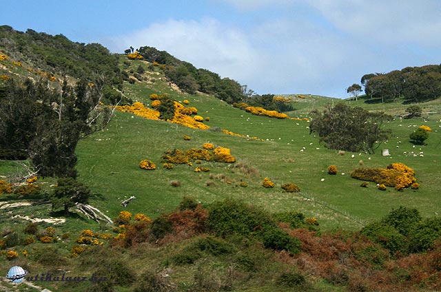 Hajónkról lehet látni a domboldalt az-öböl túlsó oldalán, ahol a pingvin-telep van, de mint kiderül, legalább 70 kilométert kell kocsikázni az Otago-öböl szélén, hogy oda érjünk. Szerencsére az egykori maori rabok jó munkát végeztek. Az út, igaz, hogy keskeny, de jó minőségű. A tájról pedig csak felsőfokon lehet beszélni. Érintjük Dunedin városát, valamikor a skótok alapították, állomás épülete ma is látványosság. Eredeti neve New Edinburg, de hamarosan átkeresztelték a szeretett skót város kelta nevére, Dunedinre.