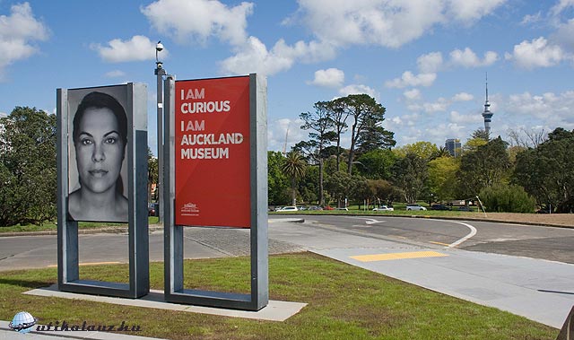 Az Auckland Múzeumnál azonban megállunk. Nagy, semmit mondóan kinéző épület. A maori vonatkozású dolgokat megnéztük, de egy óra alatt nem sokat lehet. Közben megszomjaztunk s kiderült 0.5 l víz 4 NZD. Inkább egy sört vettem volna, az 6 NZD kár, hogy azt a múzeumban nem árulnak. A múzeum egy hatalmas park, az Auckland Domain területén van. Hatalmas fák, gondozott gyep, a filagóriában pedig ingyenes hétvégi koncertek.