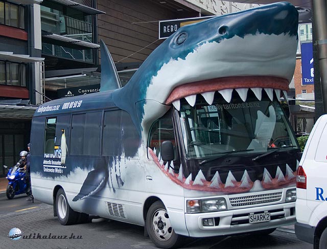Egy ideig csak nézelődünk, utána eszembe jutott, hogy létezik egy ingyenes városnéző buszjárat. Az egyik megállója a Britomart központnál, a város közlekedési központjánál van. Tájékoztatnak, hogy csak nézzük a piros buszt, és arra szálljunk fel, az az ingyenes városnéző busz. Elmegy vagy 3-4 kék, semmi piros, mikor megelégeltem a dolgokat, és megkérdeztem az egyik kék busz vezetőjét mikor jön a piros. A válasz az volt, hogy ez a piros busz. Először kételkedtem, de aztán felültünk, s legalább megtanultam, hogy Aucklandban a piros az kék. A buszon pedig csak mi voltunk turisták, lévén a szezon még csak most kezdődött. Az egyetemistáknak meg helybelieknek azonban jól fogott az ingyenes szállítás.