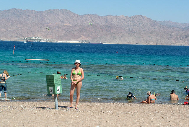 Már nagyon vártam az utat, mert néhány évvel ezelőtt voltam és most izgatottam vártam milyen csoda fog elém tárulni. Reggel fél 7-kor indultunk Gederából – Tel-Avivtól kb 3O km-re lévő város – és a sivatagon keresztül és fél 1-re értünk Eilatra. Eilaton repülőtér is van, igy aki talál közvetlen csatlakozást Tel-Avivból, egyenesen odarepülhet. A déli tengerparton Egyiptom felé, 2 szobás, légkondicionált apartmanban szálltunk meg, melyet megfizethető áron kaptunk. Az apartmanban fürdőszoba wc-vel, külön wc, hűtőszekrény, vízforraló várt bennünket. Az úton szendvicset ebédeltünk, így odaérkezésünkkor csak egy kávét kavartunk és már indultunk is az út tuloldalán védett területen lévő partra.