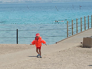 Mivel pici lány volt velünk, mindig vigyázott rá valamelyikünk. Karúszóval és kis gumicsónakkal felszerelve érkeztünk, de ő is a vízbe kívánkozott, így vásároltunk számára egy pici mentőmellényt 25 sékelért és a karúszóval kiegészítve velünk együtt élvezhette a fűrdőzést.
