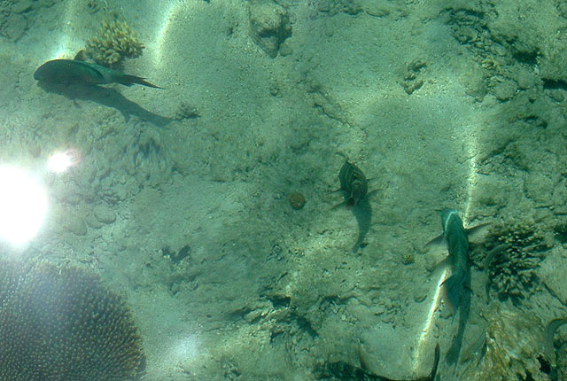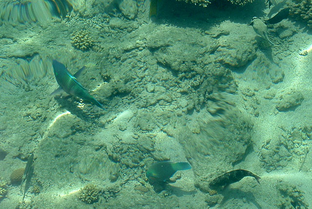 Másnap reggel – mivel a szálláshoz reggeli is jár – a sokféle zöldség, sajt, tojás, szósz, gyümölcs között válogathattunk. A part nyitására már mi az elsők között érkeztünk. Az első vízreszállás “eredménye” egy rája volt. Egy darabig kísértem, de eltűnt a korallok között. A part másik irányába indultam el, hogy új területeket fedezzek fel. Hatalmas korallépítmények megszámlálhatatlan fajtája között megbúvó halakat lestem. Egy világító zöld hal annyira beleolvadt a szintén olyan színű, salátaszerű korallba, hogy nagyon kellett figyelnem látom-e még.