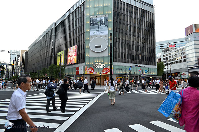 Láttunk egy modern buddhista szentélyt (Tsukuji Hongan-ji; ji=buddhista templom), a nagykereskedők halpiacát, már takarításkor (sajnos pár angolna árválkodott már csak a ládákban), a folyópartot, egy szép japánkert parkot – Hamarikyu-teien (teien=kert) a neve – tele nagy fekete (talán) kormoránokkal. Átkutyagoltunk a Ginza negyedbe, közben szívélyes invitálásra beugrottunk egy turistairodába, ahol két halál barátságos csaj kezét-lábát törte értünk és boldog volt, hogy benéztünk hozzájuk.