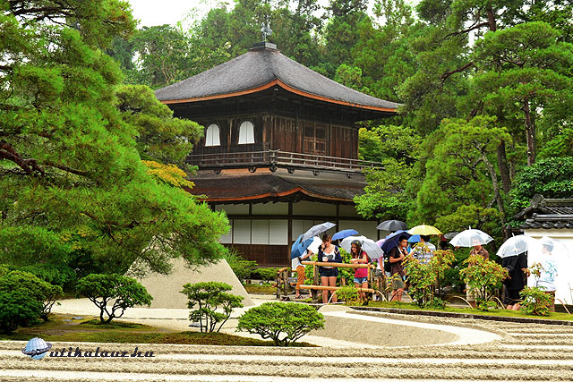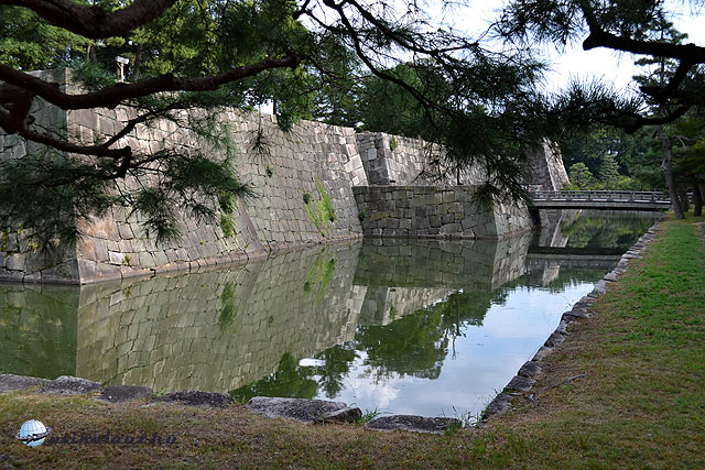 Nem hagyhattuk még ki a Kiotói császári palota kertjét – benne a palota egy kb. 500 x 500 m-es négyzet alaprajzú, nagyrészt földszintes épületkomplexumnak látszik, négyméteres fallal körülvéve, őrzik persze, be kell előre jelentkezni – ilyenünk nekünk nem volt, úgyhogy kint maradtunk. A park semmi különleges, nyitva a nép előtt, minden az errefelé szokásos szürke (andezit?) murvával felszórva.