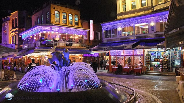 A sétálóutca másik vége a Taksim tér. Ide a Boszporusz partján közlekedő villamostól szintén földalatti siklóval lehet feljutni. A Taksim tér Isztambul egyik központja. Az Újév köszöntésére rendezett tűzijátékot is innen lőtték, hatalmas tömeg várta hangos visszaszámlálással 2011-et. Mi is köztük voltunk. No persze mi magyarul számoltunk, és örömködtünk!