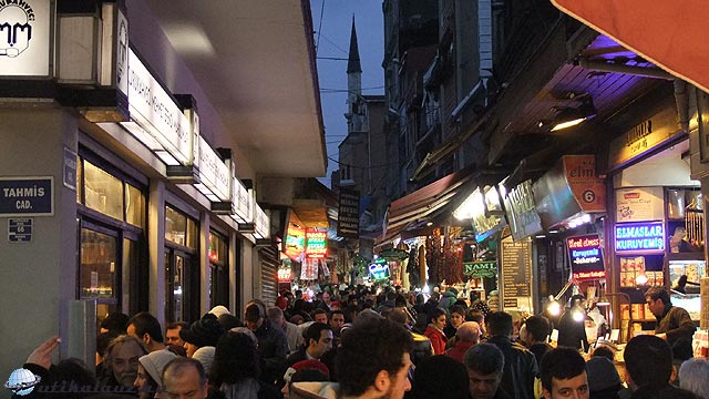 Ha eljutottunk a villamos Eminömü megállójáig, szálljunk le, és nézzünk körül. Mi is ezt tettük. Az első, ami a nőknek tutti, de főzni szerető férfiaknak is lélegzetállító, a Fűszer Bazár (Misir Carsisi). Már maga az épület is figyelemre méltó, 1600-as évek elején épült. De ami belül van! Fűszerek, édességek, gasztronómiai különlegességek, minden, ami a török konyha elengedhetetlen része. No és persze tömeg, de ez már megszokottá vált pár napos isztambuli tartózkodást követően.