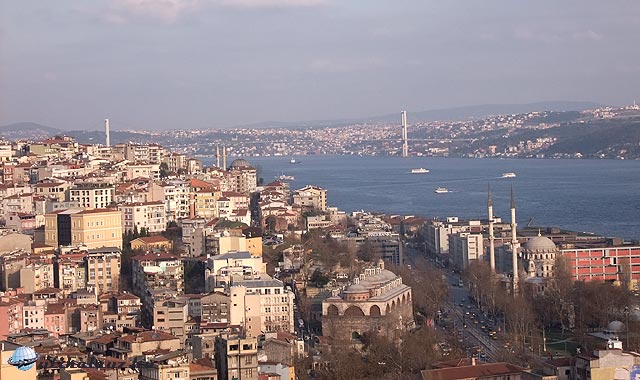 A túloldalon, a Karaköy megállótól lehet földalatti siklóval feljutni a Tunel-ig, vagy gyalogosan, érintve a Galata-tornyot. Ide azért bandukoltunk fel, mert a toronyba fel lehet menni lifttel, és a körteraszról látni egész Isztambult. Természetesen következett a sorbaállás, jegyvétel (10 TL), majd a panoráma. Megéri!