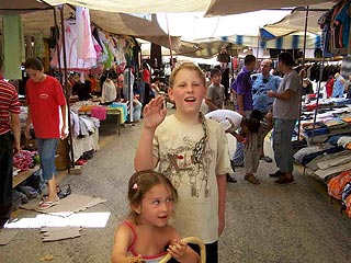 Egyik nap elmentünk Antalya felé Manavgatba a nagy bazárba. Sokkal nagyobb mint ami a környékünkön van heti kétszer. Mint utólag kiderült, nem érte meg elmenni, minden sokkal drágább volt mint nálunk. Gondolom, ez azért van, mert ott szinte csak turisták voltak. Rengeteg buszt láttunk, amivel hozták a jó népet soppolni. Nálunk meg körülbelül fele-fele arányban voltunk a lakossággal. Miután kellően elfáradtunk a terjedelmes bazár körbenjárásában, folytattuk utunkat Antalya felé, a néhány kilóméterre lévő Side-be, egy nagyon szép ősi halászfaluba. Szép homokos a partja és sekély a vize, ennek köszönhetően elég népszerű nyaralóhely. Tele van klasszikus romokkal és a vonzerejét a nyüzsgő főutcáján található műhelyek, bárok, vendéglők sora emeli. A város legérdekesebb látnivalója az amfiteátrum, amely valamikor akár 20.000 ember befogadására is képes volt.