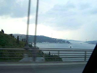 A Boszporuszból sajna nem sokat láttunk. Csak néhány képet sikerült csinálni útközben, megállásra nincs lehetőség. Ahhoz le kellene menni az autóútról, de ahhoz nekem se kedvem se bátorságom nem volt. Lehet hogy még most is ott keringenénk abban az iszonyatos forgalomban. Az autóút 4+1 sávos de már korán reggel is nagy volt a forgalom rajta.