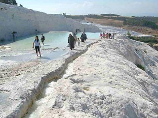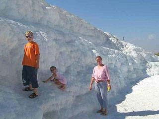 Gyorsan teltek múltak a hetek, napok és azon kezdtünk el gondolkodni hogy hazafelé menet meg kellene látogatni a világ egyik ritka csodáját, Pamukkálét. Tavaly megnéztük Trója várát, az idén útbaejtettük a ragyogóan fehér mészkőmedencéket. A török kormány intézkedéseket vezetett be a „medencék” védelmében. Megközeliteni csak a kijelölt útvonalon lehet és csak meghatározott medencékben lehet fürödni.