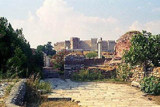 Az erőddel szomszédos dombon vannak a Szent János bazilika romjai. Valaha hihetetlenül nagy építmény lehetett, biztosan felvette a versenyt még az Aja Szófiával is. Érdemes megtekinteni, barangolni a boltívek között. Mi itt találkoztunk egy helybeli segédmunkással, aki az ásatásokon dolgozott. Ő mutatott a falban olyan részeket, ahová csontok voltak beépítve / befalazva/, akárcsak a legenda szerint Déva várába. Ez az ember állítólagos ókori pénzeket is kínált eladásra, melyeket nyilván az ásatáson lophatott. Azt tanácsolom, hogy az ilyen érmék megvételével legyenek nagyon óvatosak, mert egyrészt valószínűleg hamisak, másrészt, ha nem, hazautazáskor ezek miatt esetleg bajba is kerülhetnek. A Szent János evangélista sírját magában foglaló bazilika romos falairól letekinthetünk a közeli Isa Bey dzsámira. Ha marad rá időnk és energiánk, ezt az iszlám emléket se hagyjuk ki.