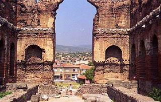Érdemes egy napra elkanyarodni a szárazföld belseje felé is. Az Aydinon átvezető, autópályával vegyes főúton majdnem 200 kilométer megtétele után Nazili városát elhagyva kell jobbra elfordulni egy mellékútra, amely Afrodiziaszhoz /Geyre falu/ vezet, ahonnan már a híres Pamukkale sincs messze! Előbb azonban nagyon is megéri egy kis kitérő Sultanhisarból balra, fel a hegyekbe Nysa romjaihoz. Ez a hely nem szerepel az útikönyvekben, de éppen ez a legjobb benne. Az ásatások folyamatosak, így a saját szemünkkel láthatjuk, hogyan emelkedik elő a földből egy ókori város. Az embernek kedve támad lapátot ragadni, és beállni földet túrni. Nysa hatalmas színháza már napvilágra került, uralja a domboldalt.