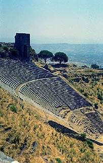 Az Égei partvidék második legnagyobb és leglátványosabb ókori városának romjai İzmirtől északra, Efezosztól több mint 200 kilométerre találhatóak, de néhány órás autóúttal Kusadasiból elérhetőek Ezeket meg kell látogatni. Még északabbra van Trója, de már olyan távolságra, ami egy nap alatt – a városnézést is hozzászámítva – autóval sem járható meg. Pergamon a mai Bergama körül fekszik. A város főutcáján van a múzeum. Ettől nem túl messze, a fellegvárra vezető út sarkánál láthatjuk a vörös téglából épült Szerapisz szentély hatalmas romjait. A templombelsőből nézve még félelmetesebb az óriási falak látványa. Innen meredek autóút vezet az Akropoliszra, ahol az egykori pergamoni könyvtár és a palota maradványai láthatóak. Itt volt a szárnyas oltár is, amit a németek Berlinbe vittek és egy külön múzeumban újra felépítettek. A szárnyas oltár helyéről és a szomszédságában a hegyoldalba vájt, szédületesen meredek színházi nézőtérről gyönyörű kilátás nyílik a környező tájra. Ide látszik a város túlfelén lévő Aszklepion is. Ez gyakorlatilag egy ókori szanatórium volt, fürdőkkel, sétányokkal, kis színházzal. Ennek meglátogatását is érdemes beleszorítani a napi programba.