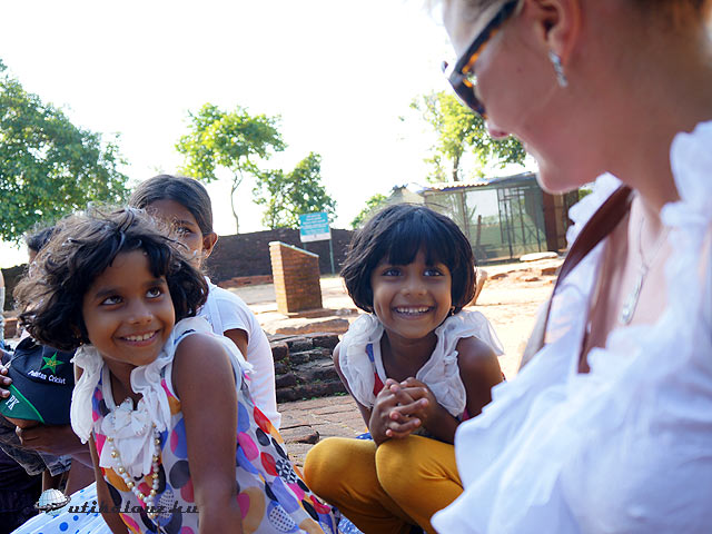 Míg megmásztuk a hatalmas hegyet megcsodálhattuk a “Sigiriya-i Asszonyok” freskókat, az oroszlán teraszt, valamint Ázsia legrégebbi kertjeit. A szikla tetejéről mesébe illő volt a kilátás. Lefelé menet kicsit megpihentünk, leültünk majd azt vettük észre, hogy helyi kirándulók körül vettek minket. Kedvesen érdeklődtek, kik vagyunk, mi járatban vagyunk itt. Mikor elújságoltuk, hogy ez a nászutunk, gratuláltak, egyenként kezet fogtak velünk. Szinte zavarba ejtő volt ez az érdeklődés és kedvesség vadidegen emberektől. Ez az élmény elfeledtette velünk az elefánt árvaházban szerzett negatív tapasztalatokat.