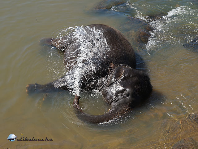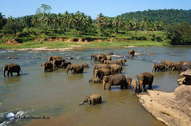 Dél előtt pár perccel lesétáltunk egy közeli folyóhoz, ahol ebédidőben megtekinthettük az elefántcsordát fürdőzés közben. A parton egy valóságos turisztikai központot építettek ki a helyiek. Egy pincér megragadott bennünket, majd borravaló fejében keresett nekünk egy ülőhelyet, ahonnan kényelmesen, iszogatás közben nézhettük az állatokat. Nem volt lehetőségünk ellenkezésre. Itt mindenért fizetni kellett. Emellett folyamatosan próbáltak rám sózni valamit: hol banánt, hol Sri Lankáról szóló könyvet, DVD-t.