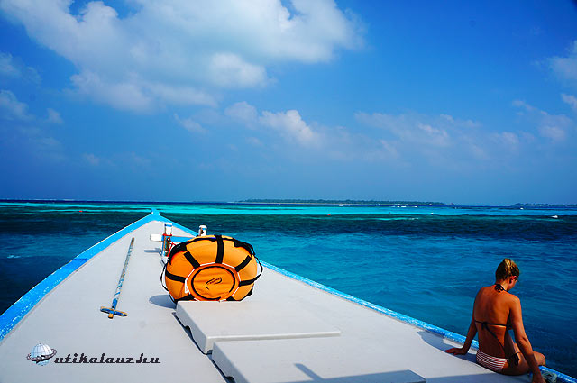 Gépünk pontosan indult Maléba, a repülőút körülbelül másfél órát vett igénybe. Leírhatatlan élmény volt, mikor megpillantottam a magasból a szigeteket. Landolásnál, mintha a vízre ereszkedtünk volna. Sajnos a repülőtéren még jó egy órát kellett várnunk a hajó indulására, ami az általunk kiválasztott szigetre vitt a Male Atoll-on belül.