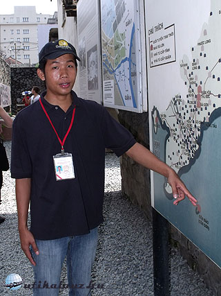Egyszerű épület, a belépő jegy pedig nincs 1 dollár. Az udvaron harckocsik, fegyverek és a fa alatt körben a helyi idegenvezetők. Ők nem mennek be a turistákkal a múzeumba, kint várnak mindenkire mosolyogva. Az ok nem lustaság, vagy kényelmesség, hanem előírás, amit javasolt minden vietnámi idegenvezetőnek betartani. Ne menjen be a múzeumba, és ne kommentálja a képeket.
