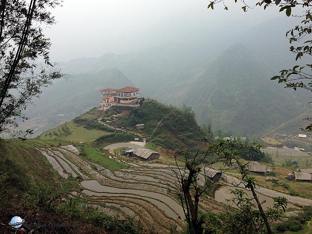 A piac körbejárása után, újabb 2 órás buszozást követően kisebb kitérővel megérkeztünk Sa Pa-ba, az első vietnámi szállásunkra. A busz először egy hostelhez vitt, ha esetleg nem lenne szállásunk, ott megszállhatunk alapon. Ez volt a legdrágább szállásunk egész ottlétünk alatt (38 USD/éj Sa Pa Unique hotel), de tökéletesen megfelelt a leírásoknak, erkély kilátással a rizsteraszokra. Távozásunkkor még rántottás szendvicset, vizet és almát is csomagoltak nekünk a vonatra (holott az alma ott nagy kincsnek számít).