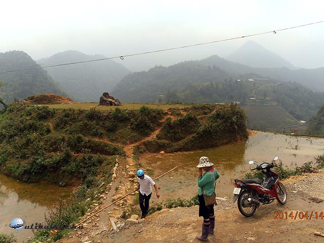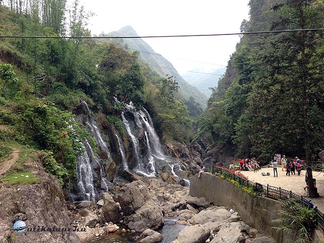 Reggel gyalog indultunk kifelé a városból a kb. 1,5 km-re lévő Cat cat faluba. A helyi asszonyok napi több tíz km-t sétálnak mindenféle csecsebecsét árusítva a turistáknak. Többségében a Hmong törzs tagjai, színes ruhákban, hátukra erősítve egy letakart kosárral vagy egy bebugyolált csecsemővel. Útközben helyi boltokban potom áron lehet kőből készült, helyiek által készített faragott szobrokat valamint North face ruhákat venni (15-30USD között; dollárban lehet fizetni a legtöbb helyen). A Noth face egyébként tucatáru Vietnámban, a piacon térdig ezen márkájú kabátokban és nadrágokban sétálgattunk (a cipzárját meg kell nézni, a legtöbb hibás). A falu bejárata után egy tábla jelzi, hogy „train” található balra, itt megkérdeztük a helyi őrtől, milyen hosszan visz a vonat, állítása szerint 2 km, ám, mint utólag kiderült, nem vonat volt, hanem arra is indult egy ösvény, ami másik irányból kerülte meg a falut. Mivel mi továbbmentünk, nem vettük észre a belépőjegyeket árusító bódét (a faluba 40 000 VDN lett volna a belépő, de senki nem kérte tőlünk, így csak távozóban tudatosult bennünk, hogy jegyet kellett volna váltanunk). Egy, kb. 4 km-en át körbe haladó úton elmentünk egy vízesés mellett, a helyiek házai között. Az út szélén vízi bivalyok, törpe malacok és a rizsteraszokra nyíló gyönyörű kilátás.