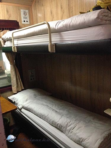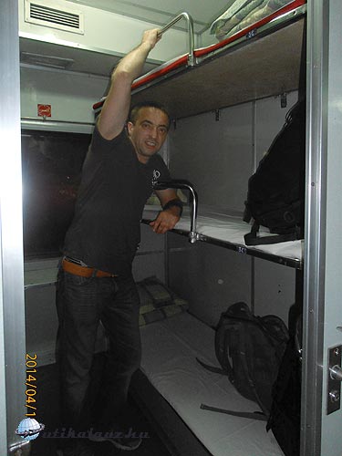 A vonat kifejezetten tiszta volt, a mosdókagyló kevésbé. A kabinos részek a szerelvény elején találhatóak, a peronokhoz csak a vonat érkezése előtt kb. fél órával engedik be az embereket. Mint kiderült, a kabinban a felsőnek vásárolt ágy valójában középső, 6 ágy van egy hálófülkében, a két legfelső viszont olyan alacsony, hogy ott európai ember nem férne el. A helyiek mérhetetlen rutinnal másztak fel az ajtó melletti kiálló mini lépcsőkön és meg sem mozdultak reggelig. A csomagot be lehet tenni az alsó ágy alá (fel kell emelni az ágy fekvő felületét).