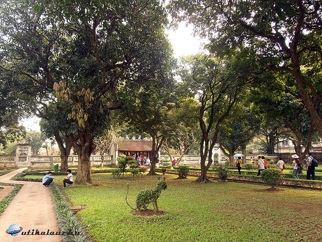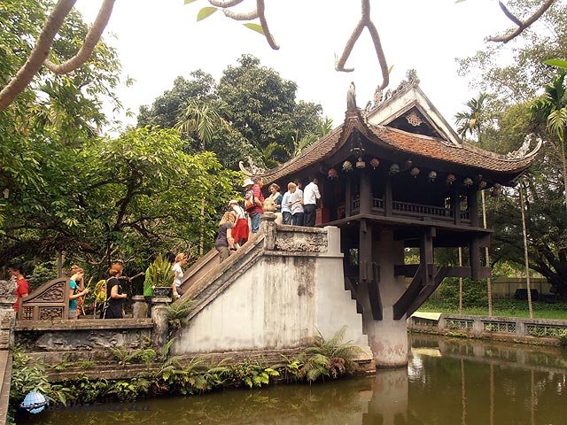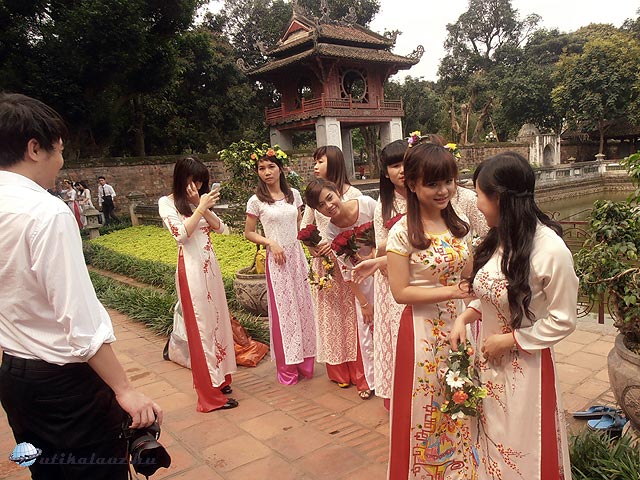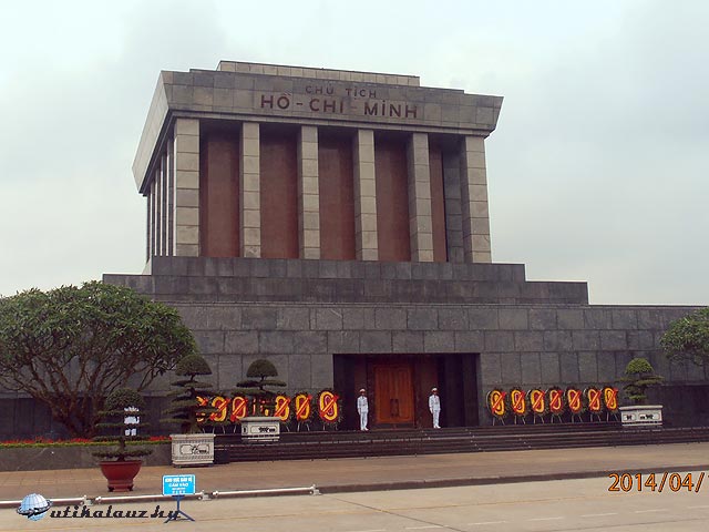 Délelőtt meglátogattuk az Irodalom Templomát (az ország első egyeteme), ahol a turistakönyvünk szerint fél napot kellett volna eltöltenünk, de másfél óra elégségesnek bizonyult rá. (belépő: 20.000 VDN/fő; nyitva: 8,30-11,30 és 13,31-16,30 kivéve hétfő és ünnepnap). Éppen ballagás révén, fiatal lányok fotózkodtak az udvaron. Megcsodáltuk gyönyörű ünnepi ruhájukat, valamint az udvaron különlegesen állatformájúra nyírt bokrokat. Ezután a Lenin parkot is útba ejtve elsétáltunk a Ba Dinh térre (elég hosszú séta), ahol Ho Chi Minh márvány mauzóleuma áll (8,00-10,30-ig nyitva), amit kívülről néztünk csak meg (nem igazán voltunk rá kíváncsiak, főként miután megtudtuk, hogy a vietnámi vezető végakaratában kifejezetten kérte, hogy halála után hamvasszák el és hamvait szórják szét nyilvánosságra nem hozott helyen. Ennek ellenére bebalzsamozták és naponta több száz helyi és turista zavarja örök nyugalmában). Ho Chi Minh 1945-ben kiáltotta ki a független Vietnami Demokratikus Köztársaságot, majd haláláig, 1969-ig volt a kommunista ország elnöke. Vietnámban azóta is egypártrendszer van, úton-útfélen a sarló-kalapács jelképe köszön vissza, de ez egy boldog kommunizmusnak tűnik, mint megtudtuk, szabadon utazhatnak is. Betértünk az Egylábú pagodához, de nem volt türelmünk a kígyózó sort kivárni, és egyébként is valami sokkal impozánsabbra számítottunk.