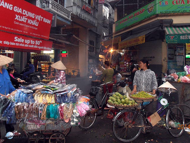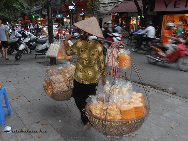 Hanoi felejthetetlenségét az utcai forgalma adja. Több száz robogó, bicikli, riksa és autó kaotikus együtt mozgása, úgy tűnik, teljes a káosz, de valójában mindenki figyel a másikra és egész utunk alatt egy kisebb koccanást láttunk, amit az autón keletkezett horzsolásokkal úsztak meg. Az úton átkelni csak határozott mozdulattal megindulva és folyamatosan haladva lehet, a motorosok pedig kikerülnek. A járdák használhatatlanok az ott parkoló robogók vagy az ott csemegéző helyiek miatt, akik az utcán főznek és mini asztaloknál csapatokban esznek szinte egész nap. A legjobb fogásokat itt lehet megvenni a helyi kifőzdékben, bár csak mutogatva értethetjük meg magunkat velük. Vannak „nyugatias” éttermek is, de mi egyet kipróbálva feladtuk erre irányuló próbálkozásunkat (háromszoros áron fele adagot szolgálnak fel).