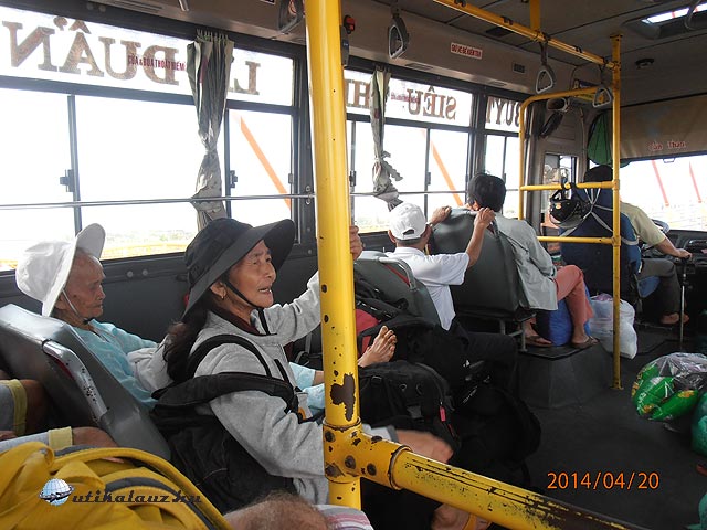 2014 április 11.-én Qatar Airways-el elindultunk célpontunk felé. A híres 5 csillagos légitársaságtól nem ájultunk el, a légiutas-kísérőt hívó lámpa másfél órán át világított míg végül meguntuk, de senki ránk se hederített. A repülőtársaság oldalán 17 óra 10 perces repülés szerepelt egy átszállással Qatarban, ami félig igaznak is bizonyult, ám a gép megállt Bangkokban, kiszállt az utasok nagy része, mi pedig néhány útitársunkkal végignéztük, amint a takarítóbrigád végigvonul a gépen és mindent rendbe tesz. Leszállni nem engedtek, több mint másfél órán át ácsorogtunk az álló repülőgépben. Rutinos utastársunk szerint ez jól bevett szokás, minden Hanoi felé menő gép leszáll Bangkokban.
