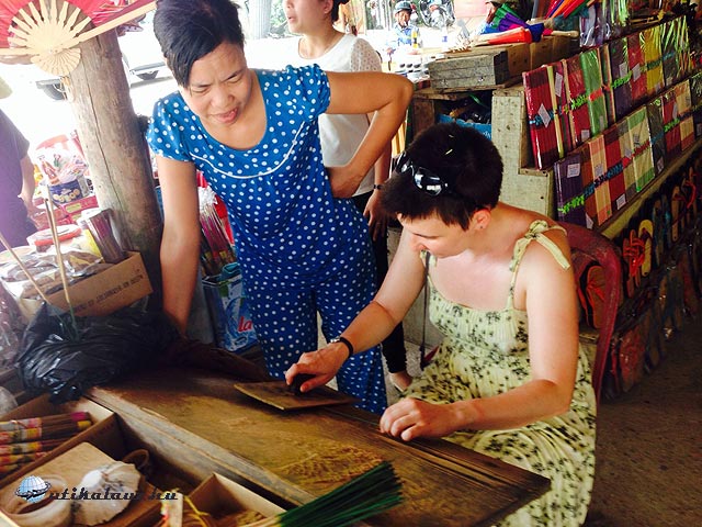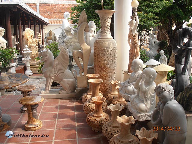 Két síremlék között megtanultunk füstölőt készíteni egy helyi árustól, és meglestük a vietnámi kalapkészítés fortélyait. Mivel igazi hangtálat szerettünk volna vásárolni, sofőrünk elvitt a város egy távoli utcájába, ahol a buddhista templomoknak készítik a hangtálakat (a turistacélpontoknál árultak ugyan arany színű hangtálakat, de azok nem tűntek túl hitelesnek). Itt felvásároltunk két különböző méretű hangtálat is 78 USD/ 2 darab áron, amit helyben útrakészre csomagoltak (később a kézipoggyászban repültünk vele, senki nem kérdezte meg, mi az, úgy látszik, ott hétköznapi, hogy az emberek hangtálakkal a hátizsákjukban repkednek). Ekkor már érthetővé vált, miért írják mindenhol, hogy háromszor annyi pénzt vigyél Vietnámba, mint amennyire gondolsz, hogy szükséged lesz – itt minden kapható, az otthoni ár töredékéért. A nap folyamán igazi helyi különlegességgel is megkínáltak: alkoholba áztatott majomkéz „pálinkát” és nyers állati máj alkoholos „kivonatát” is megkóstoltunk. Ezek ott is különlegességnek számítanak, a helyiek immunrendszer-erősítés és a férfiasságuk megőrzése céljából illetve afrodiziákumként isszák viszonylag ritkán, mivel nem mindenki számára elérhető vagy csak magas áron beszerezhető (A látványhoz képest finom volt).