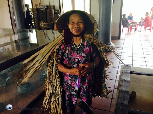 Kép-rizsmúzeumban bambuszból készült esőkabátban