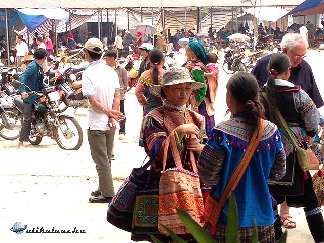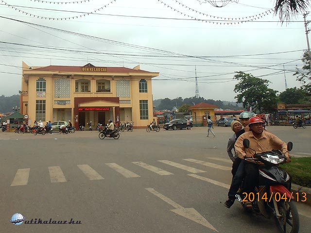 Rizsföldekkel övezett tájon robogtuk Lao Cai felé, reggeli 8 óra után valamivel érkeztünk meg (kb. egy órás késéssel). Az állomás épületét elhagyva a helyiek várják a turistákat Sa Pa felé induló járataikkal, de mi a helyi híres piacra szerettünk volna eljutni. Balra térve egy parkolóig kell menni, ahol az úttesten átkelve a szemközti utca végén található a helyi buszállomás (sárga épület Ben Ke Lao Cai felirattal). Az eligazító tábla szerint Bac Ha piacra 11.30-kor indul busz és 60000 VDN az ára. Az ablaknál ülő hölgy természetesen egyetlen szót sem értett angolul, és csak hosszas várakoztatás után volt hajlandó szóba állni velünk, miután 10 percig bámult egy üres lapot. Írásban kommunikálva elmondtuk, hogy hová mennénk, ő ráírta a lapra, hogy 10.00 és kimutatott a háta mögötti udvarra, ahol mikrobuszok álltak. Körbejártuk az udvart, egyetlen buszt találtunk Bac Ha felirattal, de az csak délután 4-kor indult. Újabb 10 perc várakozás után 11.30 került a papírra (10.00 áthúz) és rámutatott a székre, hogy várjunk. Alig telt el 5 perc, egy helyi férfi odajött hozzánk, kikísért a mikrobuszig, ami akkor érkezett és Bac Ha-t emlegette (10.25 körül járt az idő). Tanácstalanul néztünk a hölgyre, aki bólogatott (mint rájöttünk, telefonon hívta oda a sofőrt). Újabb próbálkozás 100.000 VDN-es viteldíjra, vehemens mutogatás az épületben lévő táblán feltüntetett árra és máris helyi áron robogtunk a piac felé.