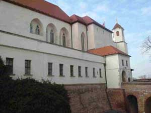 is érvényes. Az oda-vissza útvonal meghatározásakor nem a mielőbbi megérkezés, hanem az volt a fő szempont, hogy minél többet lássunk a tájból. Az autópályás közlekedést emiatt (is) elvetettük, bár egy alkalommal rámentünk egy 10-12 kilométeres autóút-szakaszra, szerencsére anyagi következmények nélkül. Így szlovák területen a Párkány (Sturovo), Érsekújvár (Nové Zámky), Nagyszombat (Trnava) útvonalon mentünk, majd Hodonín volt az első cseh település, amit érintettünk. Tekintettel a várható nagy ünnepi határforgalomra (március 14-én indultunk) nem az esztergomi hídon mentünk át Szlovákiába, hanem egy kb. 20-25 km-es kerülővel a 2/A és a 12-es úton Szob után, a Letkés-Salka határátkelőnél. Itt várakozás nélkül lebonyolítottuk a procedúrát és az Ipoly hídján szlovák területre léptünk. A főútra kijutva balra fordultunk, és kb. 12 km megtétele után Párkányba értünk. A magyarok szinte megszállták a várost. Rövid bevásárlás után az 509. sz. úton elindultunk Érsekújvár felé. Az utak még magukon viselték a tél nyomait. Ez egyrészt a kátyúkat jelenti, másrészt azt, hogy az utak két szélén felhalmozott és a kellemes idő hatására olvadó hó óriási pocsolyákat hozott létre. A követési távolság betartásánál ezeket figyelembe kellett venni. Ennek ellenére előfordult, hogy autómat rendesen beterítették nemcsak az előttem, hanem a mellettem elhaladó járművek. Mindezek ellenére a szlovák és cseh utak minősége mind a településeken, mind azokon kívül sokkal jobb, mint nálunk. A Párkányból való elindulást követő kb. 5 órán belül múlva elértük Brnot. A szállás azonban a város túlsó végén volt. Szerencsére még itthon beszereztünk egy várostérképet, mint kiderült enélkül nagy problémát jelentett volna gyalogosan vagy autóval közlekedni a városban, bár így sem volt egyszerű. Természetesen már előre megkerestük a térképen azt az utcát, ahol a szállásunk volt, de oda eljutni még térképpel is szép feladatot jelentett. Az első nehézséget az okozta, hogy hiába kerestük a térkép szerinti utcákat, a sarkokon a házfalakon csak nagyon kevés esetben találtunk utcanevet. Némi támpontot jelentett az, hogy a házszám-táblákon feltüntetik az utcát is. A házakon két tábla van. A fehér alapon barna betűs tábla az utca és házszám. A másik táblán a kerület neve és egy szám látható, ami valószínűleg az adott ház kerületen belüli sorszámát jelenti. Külön nehézséget jelentett az, hogy a városban több helyen volt útépítés, de terelőutat nem jelöltek ki. Ennek következtében kezdhettük előlről az útkeresést. Kb. 40 percet töltöttünk el azzal, hogy a város határából elérjük a szállást. Mikor megláttuk, hogy a panzió építés alatt van, feleségem rögtön elnevezte Pitypang szállónak, utalva Alfonzó emlékezetes burleszkfilmjére. (Aki esetleg fiatal kora miatt nem emlékszik rá: egy szálloda műszaki átadását az épület félkész állapotában végzik el, melynek során rengeteg mulatságos epizód történik.) Az ajtó zárva volt, becsengettem, de nem jött ki senki. Már arról beszéltünk feleségemmel, hogy hazamegyünk, mikor végre kijött valaki, aztán a szobánkat is elfoglalhattuk. Úgy látszott, hogy a panzió egyik részét még építik, miközben a másikban vendégeket fogadnak. A későbbiek során kiderült, hogy a kezdeti negatív benyomások alaptalanok voltak, mert egy kultúrált, tiszta panziót ismerhettünk meg. A befizetett reggeli is ízletes volt, csak kicsit egyoldalú, mert a harmadik napon már eléggé untuk a tojásrántottát. Brno nevezetességei egy viszonylag kis területen
