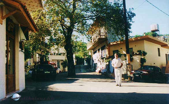 Az út Peramától Krasounas-ig, viszonylag egyenes enyhén emelkedik. Krasounas viszonylag jelentős település. A jelentős települést úgy kell érteni, hogy ezek között a hegyi falvak között van, amelyik csak négy öt házból áll. Krasounasnál aztán egy éles kanyar után elkezdődik a térkép által jelzett gyönyörű kilátás. Mármint az utas számára, mert a vezető ettől kezdve merően nézze az utat, a kilátásból csak annyit lát, hogy a jobb oldalt ne nyúzzák le a sziklák, a bal kerekek meg még ne a szakadékba guruljanak. Az 5 m széles út egy kanyar után hirtelen 2,5, de néhol két méteresre szűkül. Tíz méteren 1. 5 métert is emelkedik, de hol van itt tíz méter egyenes szakasz. A hajtűkanyar után közvetlenül az előző szakasz fölé kanyarodik az autó. Aztán ahol volt egy kis hely ott egy kicsit kiszélesedik az út. Némely helyen még 2,5 sőt 3 m-es is lehet. Na itt lehet elmenni nyugodtan a szembejövő mellett.