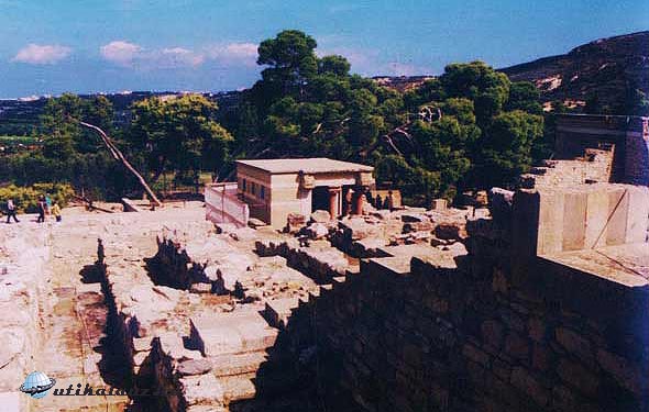 Kár hogy az idegenvezetők nem figyelmeztetik a turistákat, hogy a látottak csak díszlet. Hogy a hatalmas robosztus oszlopokat Sir Arthur Evans betonból öntötte, ugyanúgy, mint a födémeket is, és a harsány színekkel pingált freskók, természetesen csak másolatai az előkerült freskótöredékeknek. Az eredetiek a múzeumban természetesen megtekinthetők.