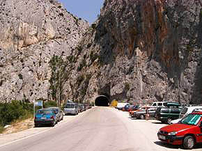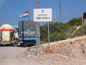 A következő probléma a bosnyák-horvát határon volt. Livno után új határt alakítottak ki (természetesen fehér mészkővel leszórt, konténerekből álló ideiglenes határátkelőhely, közben folyik az építkezés is), Arzano helyett Kamenskoban találtuk magunkat A tavaly beszerzett térképen csak Arzanoban van határátkelőhely. Ez +50 km-t jelentett volna. Találtunk egy kis hegyi utat, – kitáblázott út volt, biztosan nem csak mi jártunk így – amelyen vissza tudtunk menni Arzanoba. Na de végre újra Horvátországban voltunk, 50 km-re Omistól. Innen már féllábon is kibírjuk! Innen az út a tengerig igen kellemetlen – meredek, kanyargós, főleg akkor, ha a forgalom is óriási.