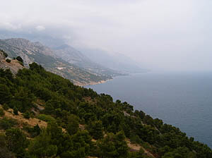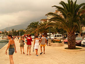 3. nap – Délelőtt strand, délután elindultunk Makarskát megnézni. Útközben megálltunk azon a ponton, ahol megláttuk a tengert. Lógott az eső lába, borzalmas meleg volt. Makarskán próbáltunk ingyen parkolni, nem sikerült. Lementünk a kikötőbe, ott találtunk óránként 10 kunáért parkolót. Megnéztük a várost, bevásároltunk a Konzumban, amikor kiléptünk az áruházból ömlött az eső. Nagyon kellemes volt, végre kicsit lehűtötte a levegőt.