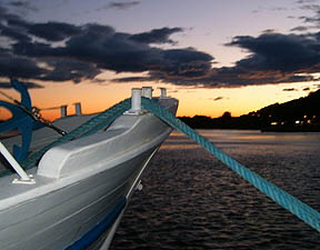 Este megbeszéltük, hogy a lehozott alapanyagokból ki mikor, főzi meg az elvállalt kaját. Este 6 órára beszéltük meg a közös vacsorákat. Vacsora után bementünk kocsival Omisba, a hajókirándulást lefoglalni. Van egy magyar idegenvezető Omisban, Radics Zsuzsinak hívják, a sétáló utca “turist birojában” dolgozik, este 7-től 9-ig. Bármilyen kérdéssel lehet hozzá fordulni. Az ő tanácsára mentünk a postirai hajókirándulásra.