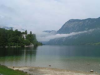 Az első állomás a Bohinji-tó volt, ami kicsit nagyobb, mint a bledi, viszont meg van tiltva az építkezés, fejlesztés, tehát sokkal természetesebb a környezet. Itt is vannak azért kempingek, sportközpontok, de ezek is a túrázásra, télen síelésre specializálódtak. Nagyon szép erdőben vezetett az út, mintha nagy sziklákat dobáltak volna óriások a földre, és ezeken között fák nőttek ki.