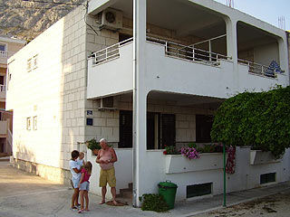 Itt már Omis felé vettük az irányt, bíztató, Omis előtt 300 méterrel bekanyarodunk az útról, még jobb, nem a hegyre visznek fel. . . Feleségem felment, 2 franciaágy, konyha, tus, klíma, tv, szoba méretű terasz. . . . 50 Eu/nap KLÍMÁVAL!!!!