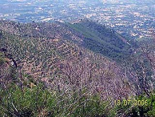 Az egyik klimatizált bevásárlóközpontban vizet, bort, kenyeret, sajtot és gyümölcsöt vettünk. A hideg dinnyét aztán Santa Giustaban egy tenger melletti tó partján levő kellemes kis parkban el is fogyasztottunk s így felfrissülve folytattuk utunkat Guspini felé. A Campidano síkságon a levegő is más, párás, ködös, szeles. Az emberek a mezőgazdasággal foglalkoznak, úgy látszik víz van bőven, mindenütt öntöznek, még a legelőket is. Gyümölcsösöket látunk, de kaktusz is van nagyon sok, néhol határt képez két birtok közt, itt délen már érik a gyümölcse. El sem tudom képzelni, hogy szedik le a kétméter magas növényekről. A leánderek itt sem maradnak el, bár illatukat sok helyütt elnyomja a trágyaszag, ami az itt “nevelkedő” disznók és tehenek felől jön.