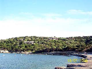 Porto Cervo csodálatos városka egyedi épületeivel. Magas házat, hotelt nem látni, rontaná is az összhangot. A földszintes házak téglaszínűek, köröttük mindenütt virág. A kis kikötőben pazar jachtok. Gránithegyek mellett folytatjuk utunkat, a sziklák érdekes alakzatokat formálnak. Meleg csak mint otthon, 35 fok, azzal a különbséggel, hogy itt nem érezni annyira. Kempinget keresünk, Cannigioneban hamarosan találunk is, a tengerparton levő drága és zsúfolt. 37 eurót kértek volna, inkább a víztől kicsit távolabbit választjuk egy éjszakára harmincért. Van itt bazén, étterem, bolt, s ami a fő, hogy nem zsúfolt és hűs helyen a fák alatt telepedhetünk le. Fürödni autóval kell menni, innen öt percre van a strand, sajnos semmiféle sétaút nem vezet oda.