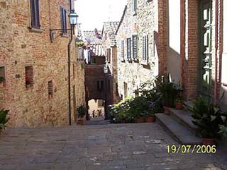 Velencéig ment is az út simán, bár itt már rengeteg kamion száguldott s várost kikerülő sztráda előtti fizetőkapuknál egyszercsak megtorpant a forgalom. Hatalmas dugó keletkezett, a kamionoktól nem lehetett látni azt sem, hogy hány sávban állunk, de minimum hatban. Mindkét oldalon kamionok, fújták a meleget az amúgy is harmincöt fokban, senki se látott semmmit, nem tudtuk miért állunk. Így tettünk meg kétszáz métert másfél óra alatt, a rendőrök hangosbemondón valami incidenst emlegettek. Végül kiderült, az úton dolgoznak. Megjegyzem, Velence körül szinte mindig van dugó a délutáni órákban. Még egy óra hosszat megtartott, mire rátértünk a Bolognai sztrádára. Itt már nagy volt a forgalom, hanem Bolognát elhagyva egyszerűen szörnyű. Hasonló szűk és kétsávos az út mint az M 0-ás budapesti körgyűrű, az egyik sávot teljesen lefoglalták a kamionok. Megálltunk egy pihenőben, ahol víz és vécé nincs, csak fák alatt padok, ez nagyon sok helyen van igy az országban. Később Firenzénél újabb dugóba kerültünk. A kamionoktól az útjelző táblákat sem lehetett rendesen látni, meg el is néztem a térképet, nem tértünk le, csak Arezzoban vettük észre, hogy nem Siennában vagyunk. A letérőnél több rendőr, valami razzia lehetett, Carabinierik. Tőlük kértünk tanácsot, merre lenne a legrövidebb út Sienna felé. Ketten is odajöttek hozzánk és nagyon barátságosan útba igazítottak.