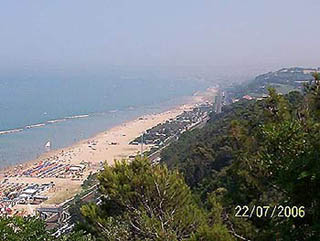 Pesarot. Hat éve jártunk itt utoljára, sokat változott azóta. A városszélén itt is multicégek építkeztek. Megváltozott a forgalmi rend is, bizonyos utcákba nem lehet behajtani. Kimegyünk a tengerpartra, Fano felé az út szélén végig autók parkolnak és rengeteg motorbicikli meg robogó. A város után valamikor ott volt olasz barátunk, Vittorio parkolója egy helyes kis bárféle étteremmel, melyben ő volt a mindenes, csak Vasco segített neki, aki magányos, hazatelepült Belgiumból és egy lakókocsiban itt lakott, ezáltal őrizte is a területet. Most sehol senki, szomorú látvány fogad, az étterem lebontva, még a szép csempeburkolat is felszedve. A rózsákból is csak két tő maradt meg, amit még mi ültettünk el a férjemmel valamikor tizennégy évvel ezelőtt. Szomorúan tovább mentünk, kemping után kellett nézni. Fanot elhagyva találtunk is egy megfelelőt. A pesaroi kempingek túlzsúfoltak voltak és kevés bennük az árnyék, ezzel szemben a kemping Madonna Ponte nyugodtabb, sövényekkel körülvett sátorhelyeken könnyen kialakíthattuk udvarunkat, ára 30 euro naponta.