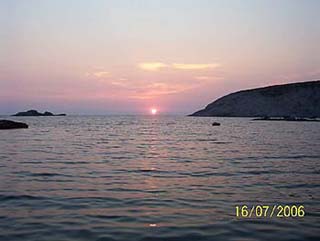 A várostól 12 km-re található, ez itt a csend és a béke szigete. Hatalmas kemping, minden egyes parcella zöld sövénnyel körbekerítve, felettünk árnyékoló zöld háló. A kemping feletti hegy tetején bungallók sora. Az utakat leánderek szegélyezik, van bolt, étterem, játszótér. A vizesblokk tiszta, kényelmes, vízcsap van az “utcácskákban” is. Néhány lépés a strand, köves. A vízben is kövek és kisebb sziklák vannak, papucs kell. A tenger átlátszóan tiszta, gyönyörű. Férjem búvárkodott, szerinte akváriumhoz hasonlít , rengeteg a sokszínű hal és a rákok , meg a víz alatti növényzet és nagyon mélyen látszik az alja. Egy öböl ez itt, körben sziklák, azokon is napoznak szerteszéjjel. Páratlan látvány, különösen a lemenő nap fényében. Mindenki fényképezi a vízben elmerülő napot, majd az esti szürkületben a távoli halászhajók sziluettjét. Késő estig a parton maradunk, majd egy könnyű vacsora után sétálunk a kemping utcácskáin. Éjjel hallani a csendet, folfoghatatlan, hogy egyáltalán semmilyen zaj nincs. Tárt ajtóknál és ablakoknál csodajót alszunk.