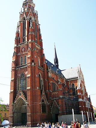 Bementünk az 1894-1900 között épült Szent Péter és Pál templomba jobbról. Az épület neogót stílusban épült, de azért találhatók benne szecessziós elemek is. a vörös téglaépület 90 méter magas harangtornya a város minden pontjáról látható. Belül hatalmas, 5000 fő befogadására alkalmas. Még található a háború alatt kilőtt vitrázsüveg a templom ablakain, amit folyamatosan állítanak helyre. Majd háromnegyed óra szabadprogram következett, mialatt megittunk egy kávét a főtéren. Megcsodáltuk a régi villamosokat, amelyek nagyon hangulatossá teszik a belvárost.