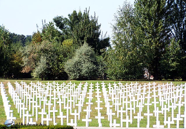 A következő állomásunk Vukovár, Eszéktől 36 km-re délre, immár Szerém megyében. Úgy érzem, erről a helyről kicsit bővebben kell írni megemlékezés gyanánt, mivel a magyar emberek számára ez volt a pokol maga, ebben a háborúban magyarokat öltek az erre kényszeríttet magyarok. Az esemény különös tragikumát az adja, hogy a Jugoszláv Néphadseregbe besorozott magyarok is kénytelenek voltak lőni a zömében magyar lakta településeket, ahogy a horvát véderő soraiban is harcoltak magyar nemzetiségűek. A harcokban a 45 000 lakosú városban csaknem minden elpusztult. Tizenkilenc évvel ezelőtt több ezer horvát, szerb és magyar vére folyt el a szerémségi város ostrománál. A három hónapos ostrom végén a szerb szabadcsapatok civileket és sebesülteket is hosszas kínzások után legyilkoltak, majd közös tömegsírba dobták őket. Ennek emlékeit egy Vukovár határában lévő emlékhely őrzi. Vukovári látogatásunk célja a népirtás áldozatainak temetője, ami egyben Európa legnagyobb tömegsírja a II. világháború óta. Ez a hely a szétlőtt város mementója. Nagyon megrázó látvány a 938 darab egyforma fehér, névtelen fejfa a civil áldozatok tömegsírjának helyén.