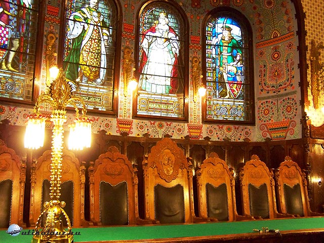Leszálltunk a buszról, és hamarosan ott álltunk a városháza 76 méter magas épület előtt. A legszebb helyisége a díszterem, a lenyűgöző belső térrel, tulipános-motívumokkal és a magyar királyokat ábrázoló gyönyörű vitrázsokkal, amelyek Róth Miksa híres műhelyében készültek. Ő maga rajzolta meg a magyar történelem nagyjait ábrázoló hat oldalsó vitrázst, illetve a központi, nagy képet Mária Terézia királynővel és Ferenc József császárral.