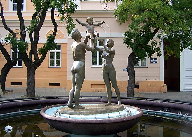 Megnéztünk egy emlékművet, amit a pestis járvány elmúltával állítottak. Teljesen összepiszkolták a galambok, pedig próbálták hálóval védeni. Dóm tér, Székesegyház, vele szemben a Szent Háromság szobor, baloldalt a Szépművészeti Múzeum. Érdekes, hogy a tér szép épületei közé beépítettek egy román templomot, aminek a homlokzata nem is a térre néz, viszont magasabbra építették az összes többi épületnél.